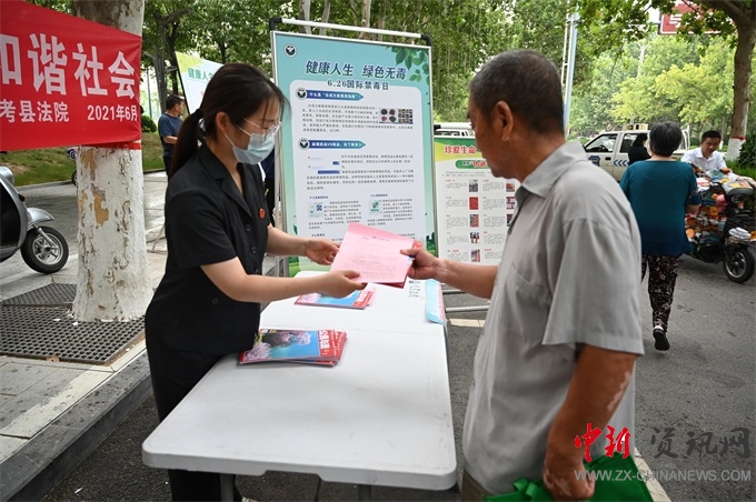 中新河南網(wǎng)6日25電(付海濤 劉記)為扎實(shí)開展“我為群眾辦實(shí)事”,在第34個(gè)國際禁毒日到來之際,為進(jìn)一步提升全民拒毒、識毒、防毒能力,營造平安和諧的社會(huì)環(huán)境。6月25日上午,蘭考縣法院組織干警在人民廣場開展“健康人生,綠色無毒”宣傳活動(dòng)。