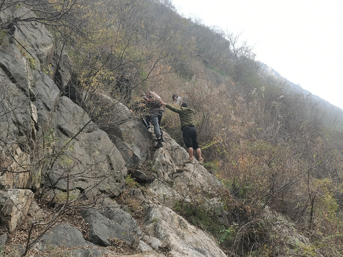 由于是無人區(qū),山路特別陡峭,大家的體力消耗巨大,部分地方的下山坡度在40度以上,十分危險。
