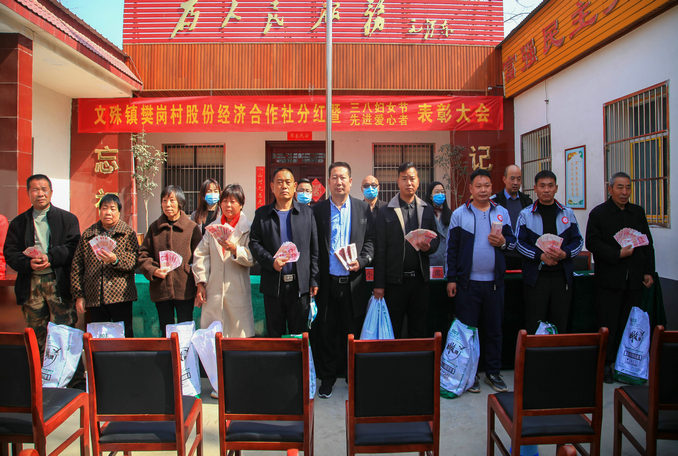 中新河南網(wǎng)3月10日電(梁靖 陳蕾 張懷鋒)“這是我第三次領取分紅,感謝俺村合作社,感謝黨和國家的好政策,俺們的日子真是越來越好”。在文殊鎮(zhèn)樊崗村參與分紅的脫貧戶崔轉紅臉上流露著燦爛的笑容。3月8日,禹州市文殊鎮(zhèn)樊崗村召開了村股份經(jīng)濟合作社分紅暨三八婦女節(jié)、先進愛心者表彰大會。