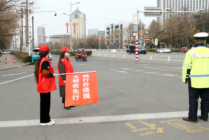 活動(dòng)中,該局志愿者到市區(qū)交通人流密集路口,化身為交通協(xié)管員,積極配合交警開(kāi)展亂闖紅燈、非機(jī)動(dòng)車逆行、騎車未戴安全頭盔、電動(dòng)車亂停亂放等不良交通現(xiàn)象的整治工作,引導(dǎo)市民摒棄交通陋習(xí)、宣傳文明出行。
