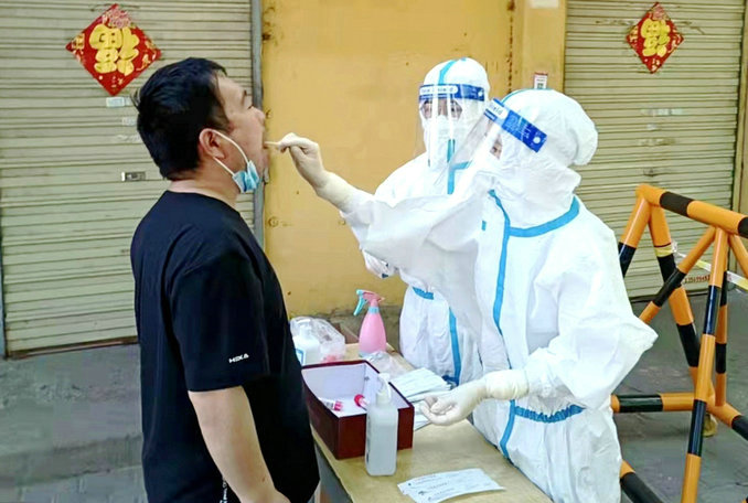 為確保盡快完成社會(huì)面雙清零任務(wù),5月5日白天采樣團(tuán)隊(duì)進(jìn)行第三輪全員核酸采樣后,晚上9點(diǎn)臨時(shí)增加第四輪重點(diǎn)人群核酸采樣任務(wù),連續(xù)作戰(zhàn)到6日凌晨4點(diǎn)半,為了盡快開展第五輪全員核酸采樣,采樣團(tuán)隊(duì)簡單休息3個(gè)小時(shí),7點(diǎn)半又再次前往分包社區(qū)開展全員核酸采樣工作。