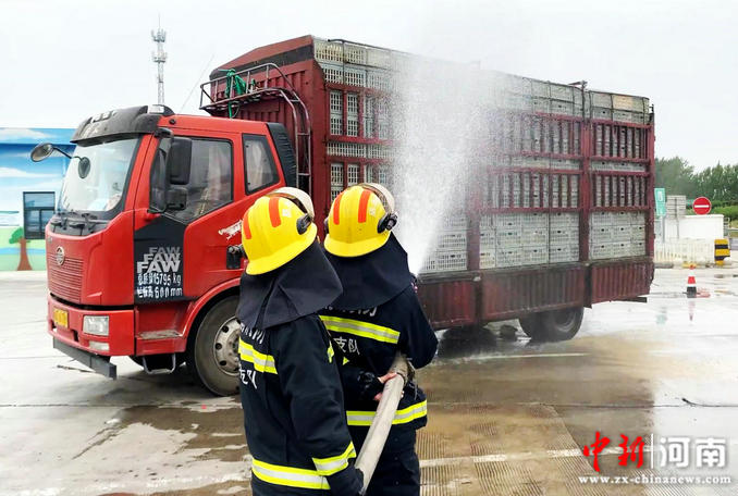 中新河南網(wǎng)6月10日電(張培 姚浩瀚)6月9日13時58分,許昌市消防救援支隊指揮中心接到了一起特殊的報警求助,稱在許昌南服務區(qū)內(nèi),一輛貨車因發(fā)動機故障被迫停在烈日下,滿載3000只的活雞需要幫忙澆水進行降溫。接到報警后,指揮中心立即調(diào)派開發(fā)區(qū)消防救援大隊瑞昌路消防救援站前往現(xiàn)場救援。