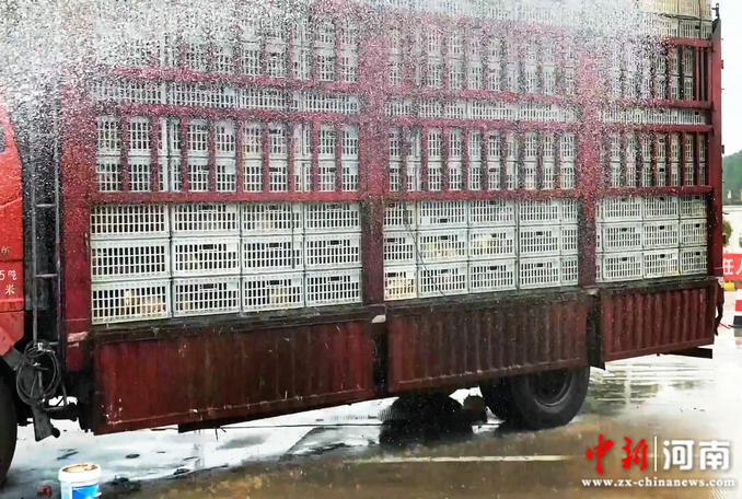 河南許昌:貨車故障3000只活雞慘遭日曬 消防隊員幫忙灑水沖涼降溫