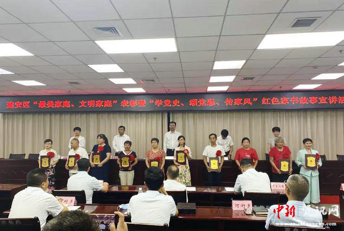 中新河南網(wǎng)6月29日電(梁靖 崔春杰)以德潤心,以文化人。為進(jìn)一步擴(kuò)大“文明家庭”“最美家庭”在文明城市創(chuàng)建中的積極作用和影響力,6月28日,許昌市建安區(qū)文明辦、建安區(qū)婦聯(lián)聯(lián)合開展文明家庭、最美家庭表彰暨“學(xué)黨史、頌黨恩、傳家風(fēng)”紅色家書故事宣講活動。建安區(qū)委常委、宣傳部長楚朝輝,建安區(qū)人大副主任李志安,建安區(qū)副區(qū)長米志偉,建安區(qū)政協(xié)副主席馬麗等出席活動。