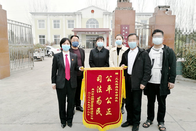 3月16日上午,被告方禹州市某建筑公司派代表到火龍法庭送上了一面錦旗:“感謝你們公平公正的調(diào)解,讓我們了卻了糾紛。”