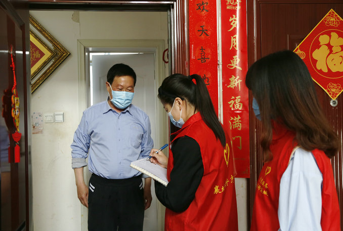 “叔叔,您好,請(qǐng)問(wèn)您家里有沒(méi)有從上;蛘咂渌咔橹懈唢L(fēng)險(xiǎn)地區(qū)返鄉(xiāng)的人員?如果有,請(qǐng)如實(shí)告知,并將信息進(jìn)行登記。”干警志愿者敲門(mén)入戶,逐戶排查,對(duì)家屬院居民有無(wú)疫情中高風(fēng)險(xiǎn)地區(qū)返鄉(xiāng)的人員信息進(jìn)行排查登記。