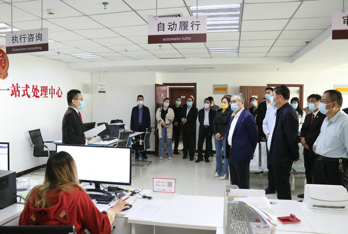 張寶生一行對魏都區(qū)法院執(zhí)行“996”工作模式進行詳細了解,還對這種由執(zhí)行指揮中心集中辦理九類事務性工作,承擔九項管理職責,提供六類技術服務的模式進行了現(xiàn)場查看體驗。