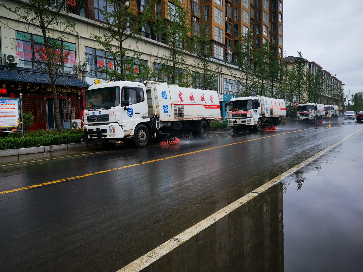 河南虞城:城管環(huán)衛(wèi)以雨為令 全力奮戰(zhàn)防汛一線