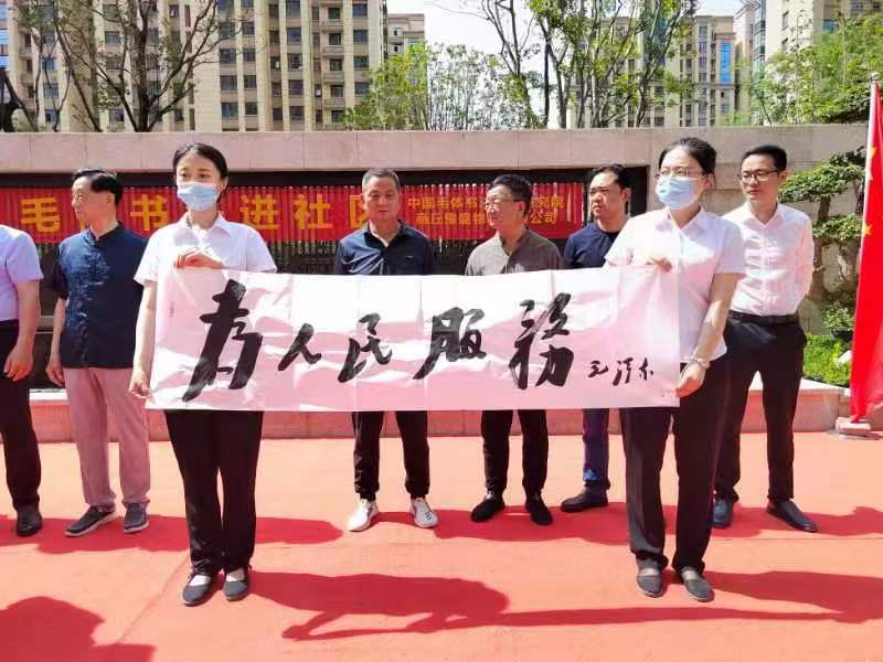 中新河南網(wǎng)商丘6月19日電 (許永強)6月18日上午,毛體書法進社區(qū)在商丘市中盛瑞府小區(qū)舉行。商丘市人大常委會原主任、中國毛體書法藝術(shù)研究院顧問莊敬山,中國毛體書法藝術(shù)研究院院長、中國毛體書法家協(xié)會副主席郭亮,中國毛體書法藝術(shù)研究院榮譽院長李文海以及部分毛體書法藝術(shù)研究院會員、轄區(qū)辦事處有關(guān)領(lǐng)導(dǎo)和中盛集團商丘豫盛物業(yè)管理有限公司物業(yè)人員共同參與了此次活動。