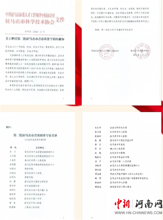 中新河南網(wǎng)駐馬店6月9日(通訊員:吳靖 李沐佳)近日,中共駐馬店市委人才工作領(lǐng)導(dǎo)小組辦公室、駐馬店市科學(xué)技術(shù)協(xié)會聯(lián)合發(fā)布《關(guān)于聘任第二批駐馬店市首席科普專家的通知》,市中心醫(yī)院劉成功、楊麗、張化蓮、張姝妤、蔡峻嶺5位優(yōu)秀專家被聘任為第二批駐馬店市首席科普專家,聘期5年。