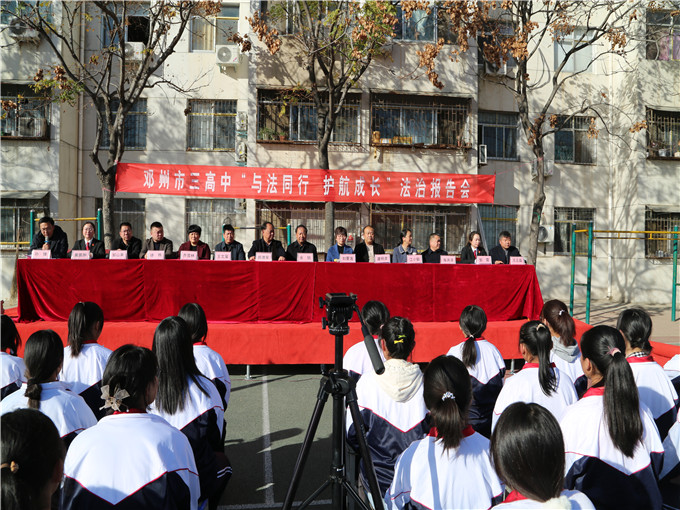 中新河南網(wǎng)12月3日電(李克選 郭霄、朱小旭、周磊)為大力倡導(dǎo)綠色閱讀和健康成長理念,凈化校園文化環(huán)境,提高師生對“掃黃打非”的認(rèn)識,增強(qiáng)對“黃”與“非”的鑒別能力,自覺抵制“黃”與“非”的侵害。12月2日下午,鄧州市人民法院聯(lián)合市人大、市宣傳部、市婦聯(lián)、市關(guān)工委、市教體局、構(gòu)林鎮(zhèn)政府等多家單位,到鄧州市三高中開展“與法同行、護(hù)航成長”送法進(jìn)校園活動。