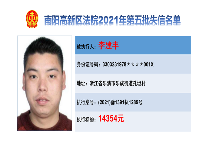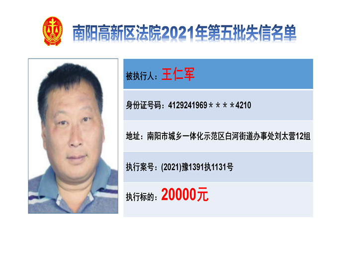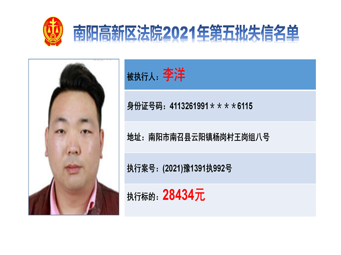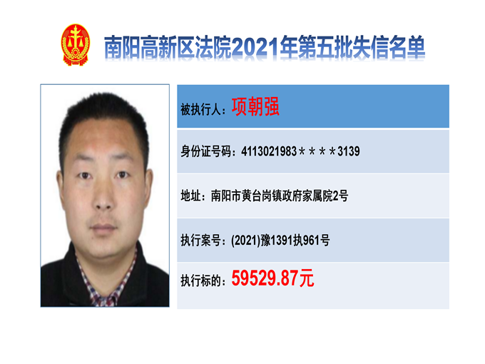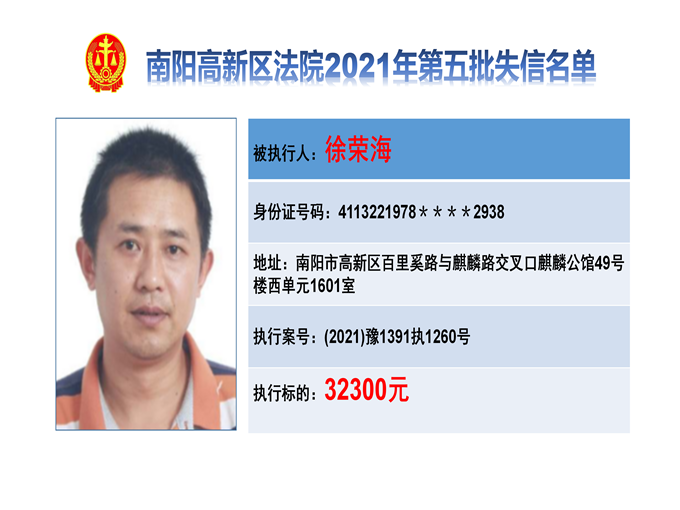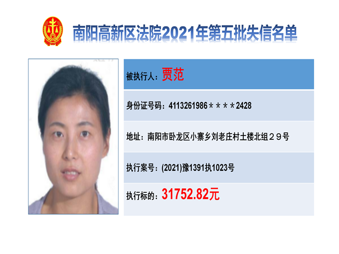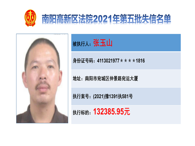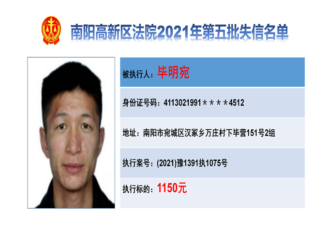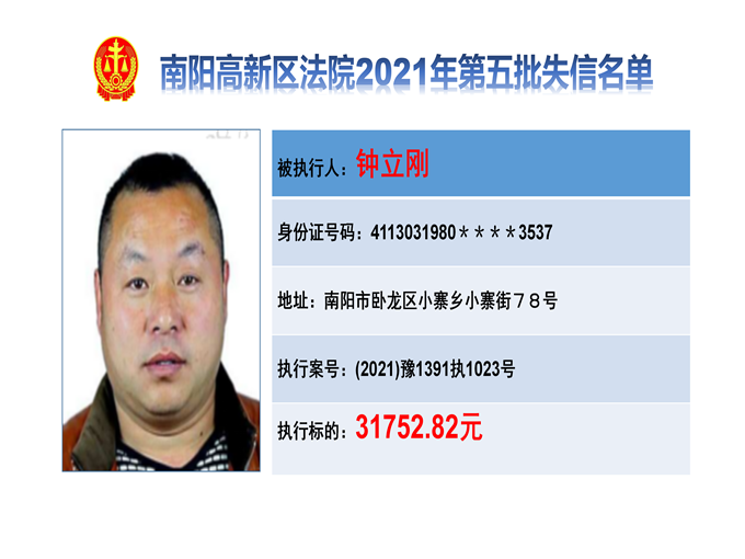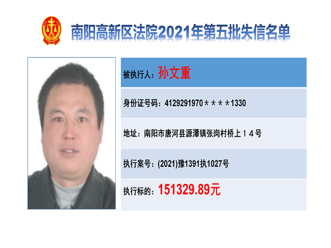 南陽(yáng)市高新法院公布2021年第五批失信人名單