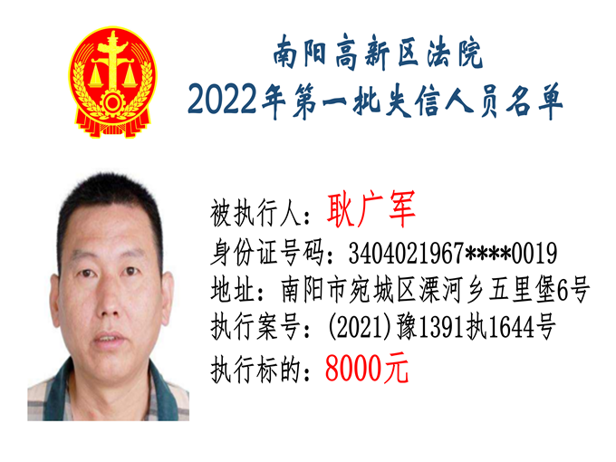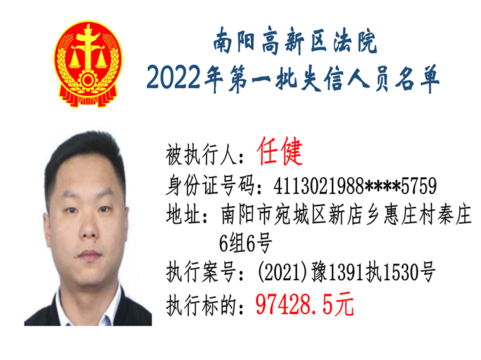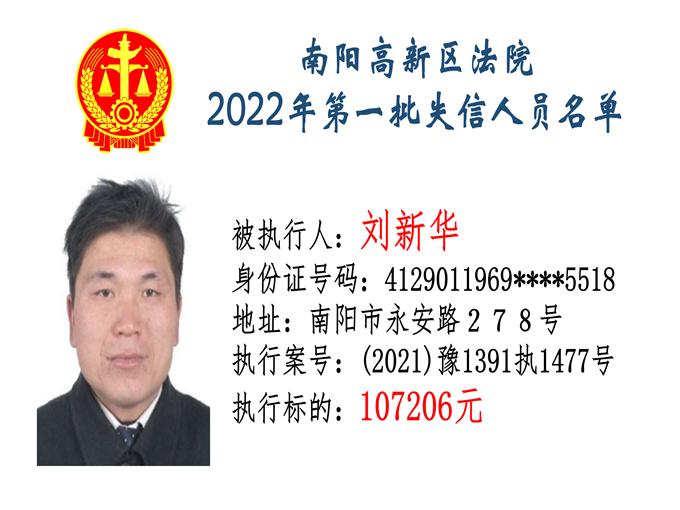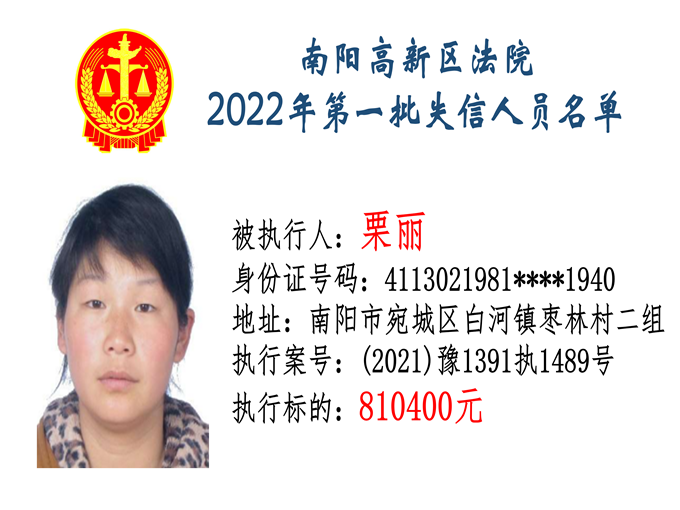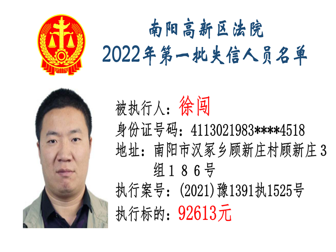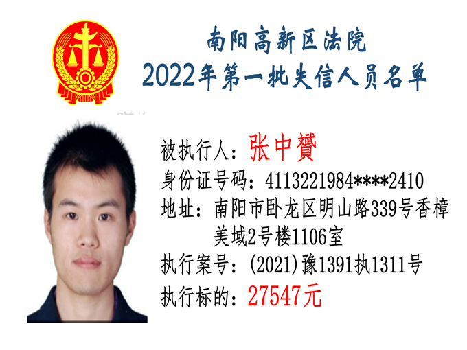 南陽高新區(qū)法院公布2022年第一批失信人員名單