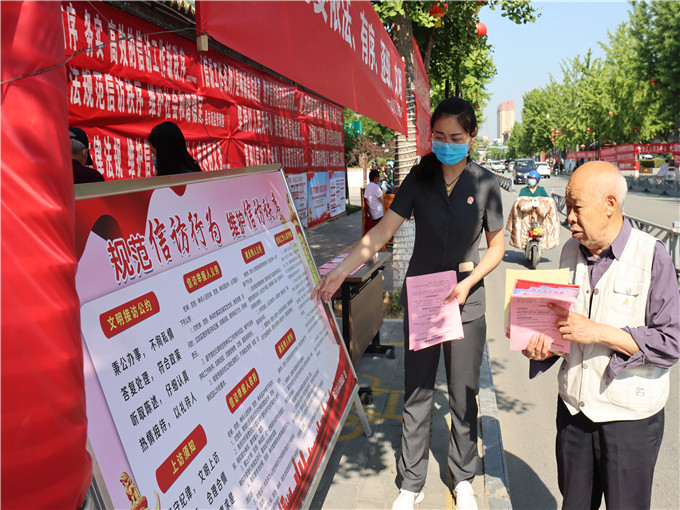 活動中,社旗法院干警走上街頭,通過懸掛橫幅、擺放宣傳版面、設(shè)立咨詢臺、發(fā)放宣傳資料等方式,廣泛宣傳信訪法規(guī),并通過現(xiàn)場交流的方式,對《信訪工作條例》中的重點內(nèi)容進行詳細的解讀,有效引導(dǎo)群眾樹立依法信訪、合理信訪、文明信訪的意識,規(guī)范信訪行為,理性反映訴求,營造學(xué)條例、用條例、守條例的濃厚氛圍。