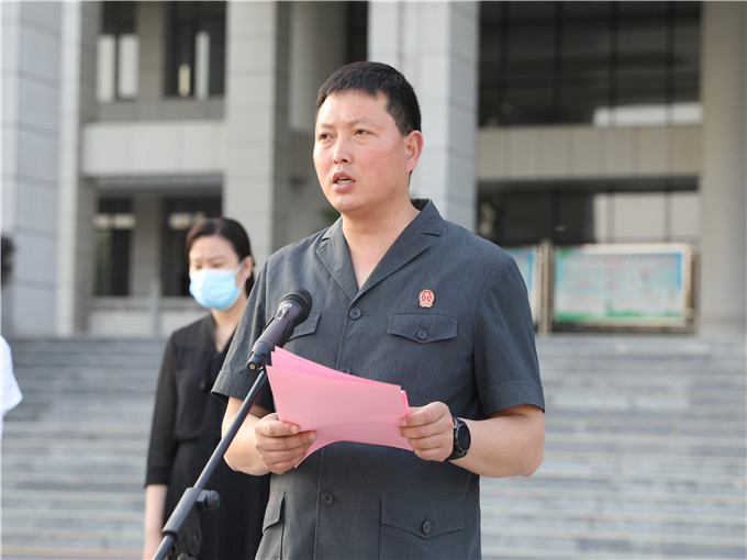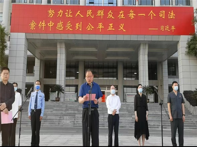 (圖為該院黨組書記、院長劉子國宣讀執(zhí)行行動工作方案) 縣委常委、政法委書記徐成旺指出,此次集中執(zhí)行行動方案措施具體、規(guī)定明確,在啟動儀式后,要迅速落實,全體執(zhí)行干警不僅要深化認識,更要思想統(tǒng)一,堅決維護司法權(quán)威,維護社會穩(wěn)定,用最快的時間、最有力的措施確保集中執(zhí)行實現(xiàn)“開門紅”。