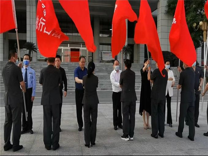(圖為內(nèi)鄉(xiāng)縣委書記、縣長張智廣等領(lǐng)導對七個執(zhí)行團隊長進行授旗) 該院黨組書記、院長劉子國表示,內(nèi)鄉(xiāng)法院將以此次專項行動為契機,以提高案件實際執(zhí)結(jié)率、實際執(zhí)行到位率為目標,加大對失信被執(zhí)行人的信用懲戒力度,嚴厲打擊拒執(zhí)犯罪,樹立司法權(quán)威,切實轉(zhuǎn)化“觀念能力作風建設(shè)年”活動成果,以實際行動迎接黨的二十大勝利召開。