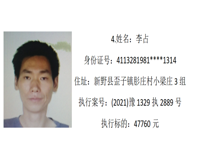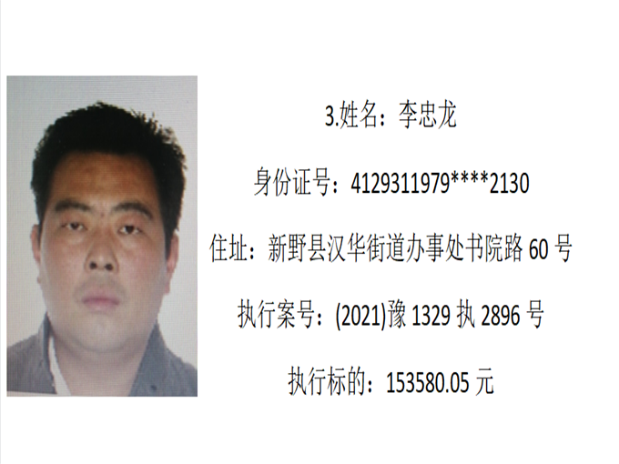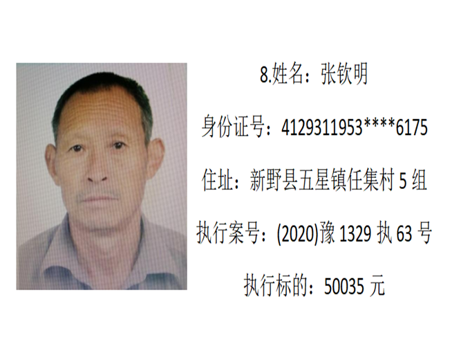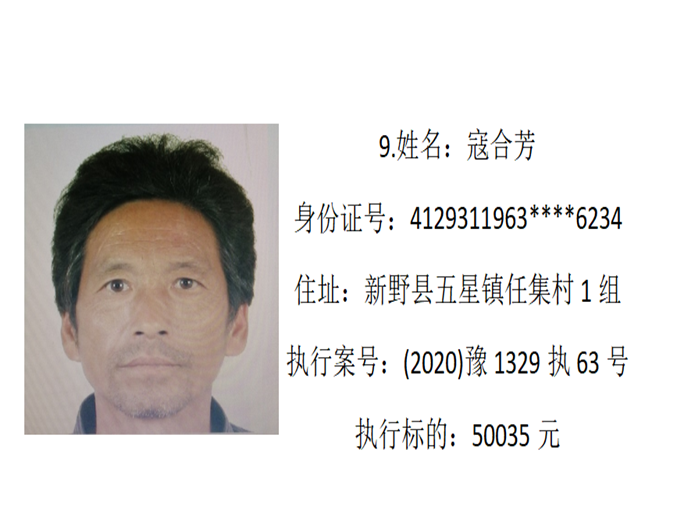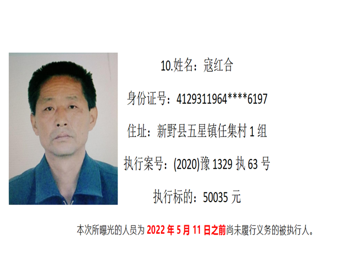 新野縣法院:公布失信被執(zhí)行人名單2022年第四期