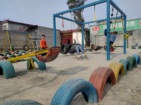 “記得最初這個(gè)角落是一塊空閑地,時(shí)間一長總是雜草叢生,不僅難打理,而且非常影響村上的人居環(huán)境。”想出這個(gè)“金點(diǎn)子”創(chuàng)意的是該鎮(zhèn)任寨村第一書記劉歡歡,她高興地介紹道,“咱們村上開大車的師傅多,聽說這個(gè)創(chuàng)意后,游樂場需要的廢舊輪胎一下子就湊齊了,考慮到下雨地面泥濘,村干部們又抽空安排了地面硬化,游樂場能這么快打造成功完全是干群齊心協(xié)力的成果。”