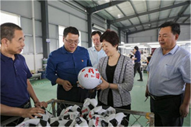 脫貧摘帽不是終點,而是新的起點。來到肖營村產(chǎn)業(yè)園時,生產(chǎn)體育器材的流水線上,村民們一字排開做著自己的工作,流水線的一頭是各種布料,另一頭就是五顏六色的足球、手球成品?粗|(zhì)地上乘、外觀靚麗的足球,不敢相信這個小小的村辦企業(yè),居然能生產(chǎn)出如此高水平的體育用品。據(jù)創(chuàng)業(yè)園負責(zé)人介紹,他們的體育產(chǎn)品銷往全國各地,還為一些名牌企業(yè)代加工部分成品和半成品,年銷售額可達近千萬元。