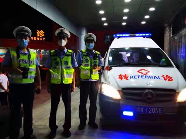 閃爍的警燈劃破了黑黑的夜空,清脆的警笛提醒著前方車輛緊急讓行。為了保障車隊通行平安,執(zhí)行任務(wù)的每一位民警輔警都瞪大了警惕的眼睛;為了最大程度減小對救護(hù)車內(nèi)患兒的驚擾,負(fù)責(zé)開道的民警把警笛的聲音調(diào)到了最;為了爭取更多的搶救時間,救護(hù)車的速度開到了120公里/時……