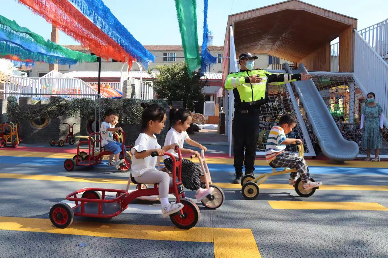 商丘交警鐵騎大隊一中隊進校園和萌娃“做游戲、講安全、送知識”