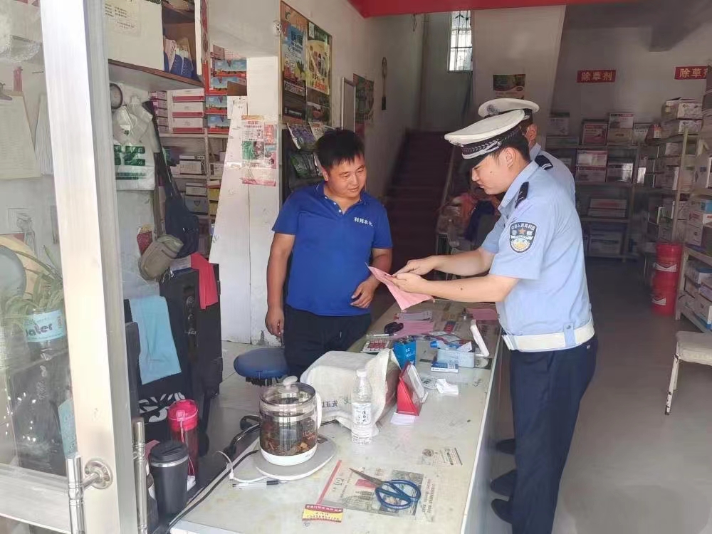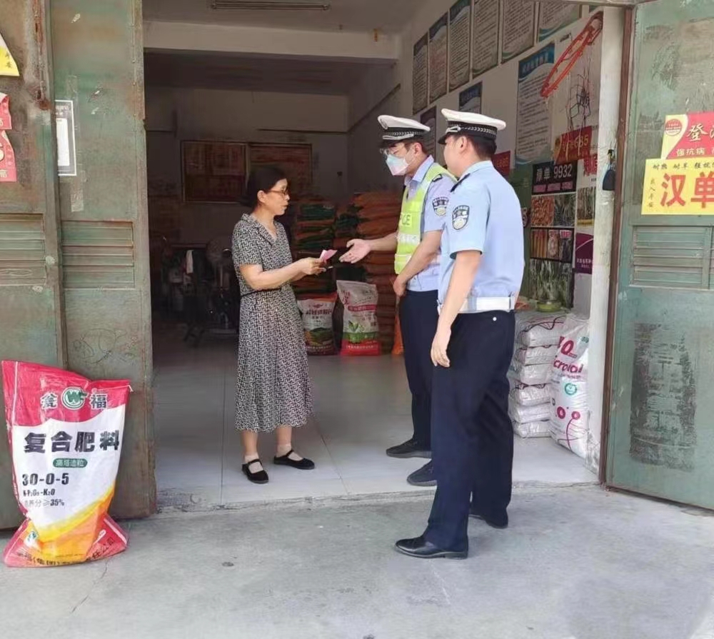 商丘交警二大隊(duì)古宋中隊(duì)走進(jìn)農(nóng)資市場(chǎng)開(kāi)展“一盔一帶”交通安全宣傳活動(dòng)