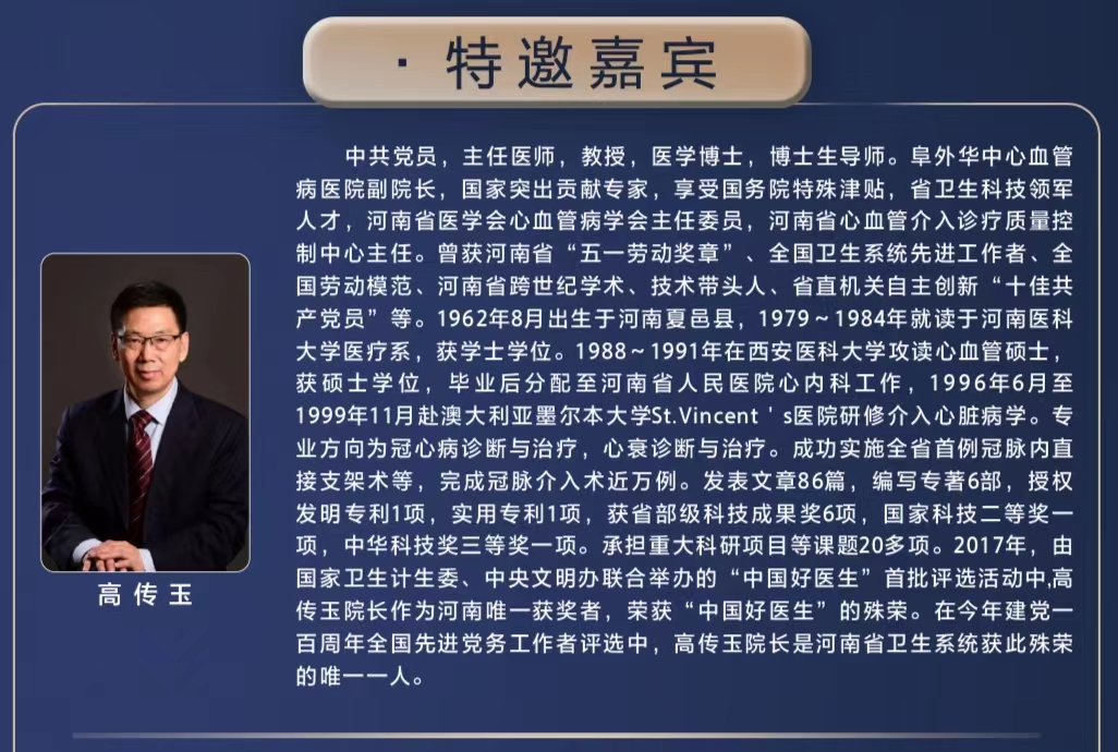 屆時,將有國家級著名心血管專家、阜外華中心血管病醫(yī)院高傳玉院長親臨授課、手術(shù)。炎炎夏日送醫(yī)到家,惠濟(jì)商丘鄉(xiāng)親。有就醫(yī)需求的患者可提前做好相關(guān)檢查并與心血管科周主任或心血管介入科魏主任聯(lián)系預(yù)約。