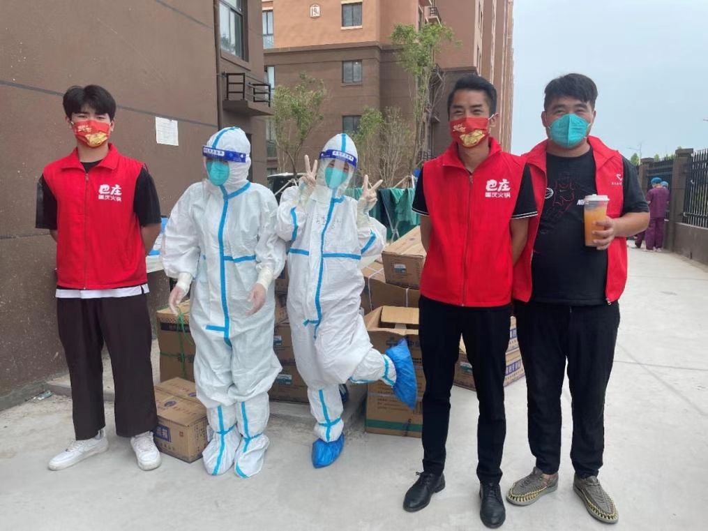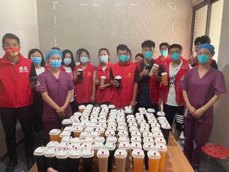 民權(quán)縣密切接觸者被送到夏邑縣進(jìn)行集中隔離,醫(yī)護(hù)人員和志愿者加班加點(diǎn)的工作著,在近40℃的高溫下,醫(yī)護(hù)人員穿著厚厚的防護(hù)服,整個(gè)人浸泡在汗水中,絲毫不敢怠慢。秋已至,夏邑巴莊火鍋在韓政委經(jīng)理的帶領(lǐng)下,給醫(yī)護(hù)人員和志愿者送來(lái)了秋天的第一杯奶茶,讓他們?cè)谘籽紫娜崭惺艿揭唤z清涼。韓經(jīng)理說(shuō):看到醫(yī)護(hù)人員和志愿者在高溫環(huán)境下辛苦工作,希望可以用加了冰的奶茶讓他們涼爽一些,也希望讓遠(yuǎn)離家鄉(xiāng)的民權(quán)隔離人員感受到溫暖,為此次抗疫貢獻(xiàn)一點(diǎn)力量,用實(shí)際行動(dòng)助力疫情防控。