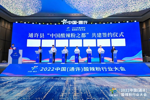 通許縣委書記張?jiān)茲谥罗o中介紹,通許已經(jīng)成為全國最大的酸辣粉生產(chǎn)加工基地,誕生了一批酸辣粉生產(chǎn)、加工、零售企業(yè),酸辣粉產(chǎn)能占全國中高端酸辣粉市場份額六成。 “通許將以酸辣粉產(chǎn)業(yè)為抓手,堅(jiān)持招大引強(qiáng)和本土培育并舉,龍頭帶動(dòng)和延鏈強(qiáng)鏈共進(jìn),全力打造特色鮮明、輻射面大、帶動(dòng)性強(qiáng)的酸辣粉產(chǎn)業(yè)集群,傾力打造‘中國酸辣粉之都’。”張?jiān)茲f。
