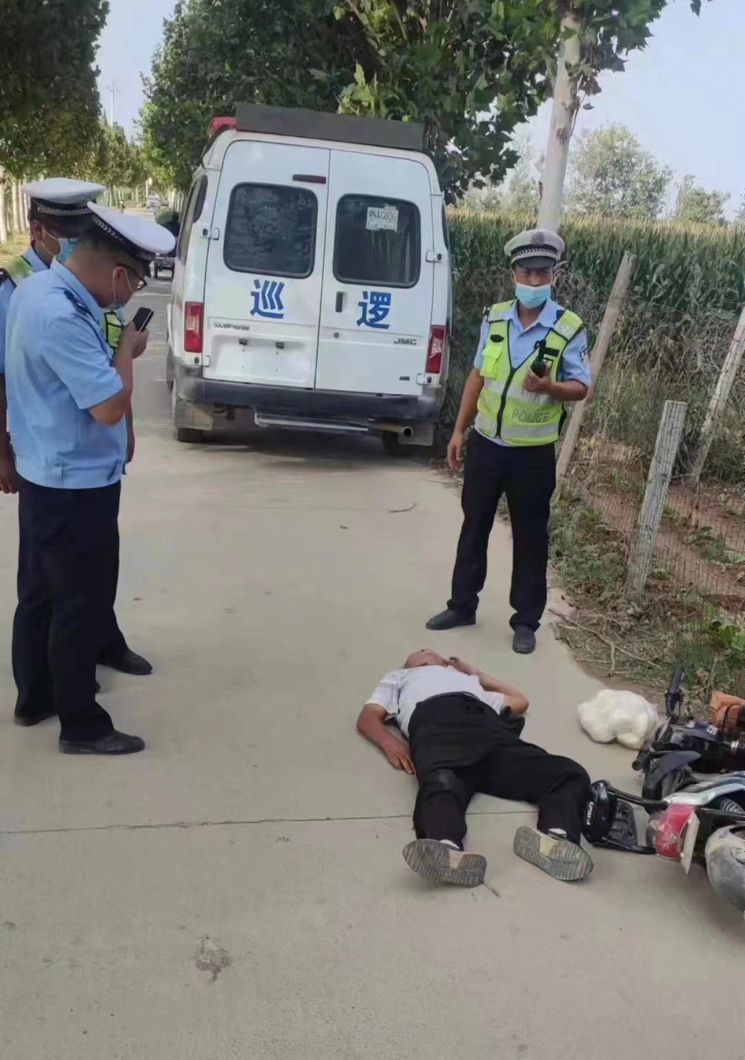 原來(lái),9月16日,70多歲的趙某華老漢騎著兩輪電動(dòng)車(chē)去利民南關(guān)村趕集,買(mǎi)了饃買(mǎi)了菜,在小攤上獨(dú)酌,多喝了幾杯。不料在回家的路上,酒力發(fā)作,力不能勝,騎著車(chē)子竟然睡著,連人帶車(chē)摔倒在蔡莊村村室北150米處的鄉(xiāng)村道上。