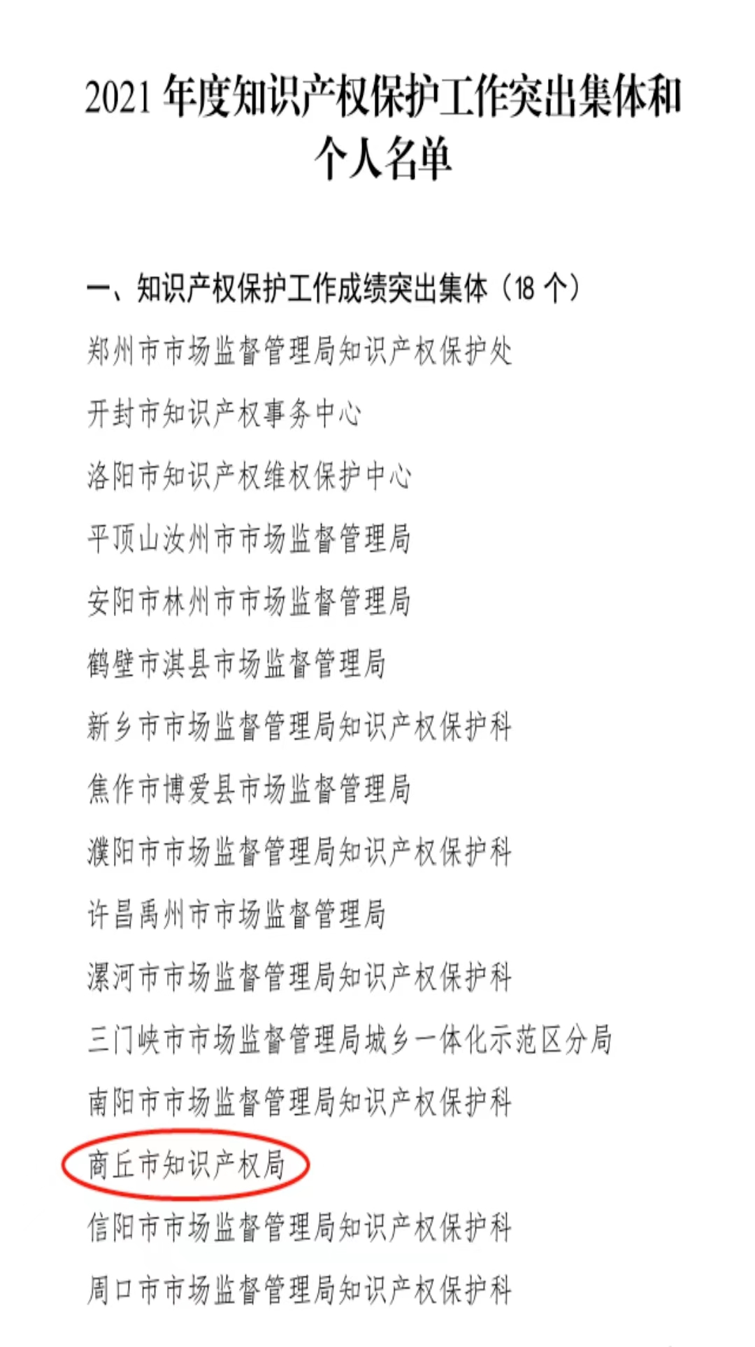 省級表彰!商丘市知識產權局和兩位同志受到表彰