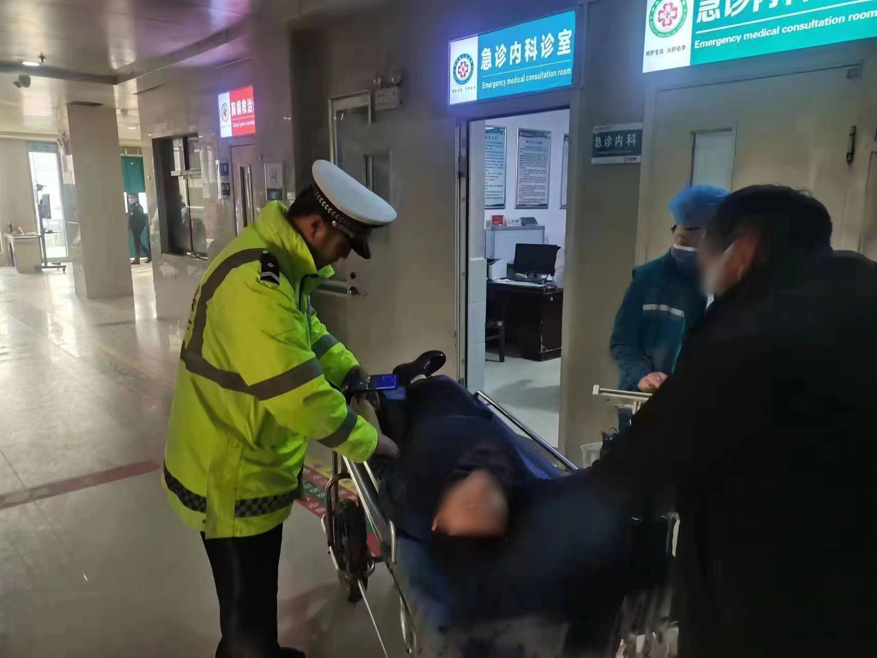 在服務(wù)區(qū)民警很快找到司機(jī)報(bào)警的豫K92***轎車,發(fā)現(xiàn)司機(jī)躺在駕駛座上面色蒼白,氣息不均,痛苦不已。司機(jī)告訴民警,他感覺頭昏眼花、胸悶胸痛、手腳冰涼抽搐,身體無法動(dòng)彈。民警現(xiàn)場(chǎng)安慰司機(jī)不要擔(dān)心害怕,120救護(hù)車幾分鐘就會(huì)趕到。病人情況危急,120急救車輛到來后,民警和醫(yī)護(hù)人員當(dāng)即將病人抬上救護(hù)車迅即駛往最近的寧陵縣人民醫(yī)院。在警車一路護(hù)送下,原本大概需要用時(shí)30分鐘的20公里路程,僅用了不足15分鐘,就將司機(jī)送至醫(yī)院急診室,為患者爭(zhēng)取到寶貴的救治時(shí)間。