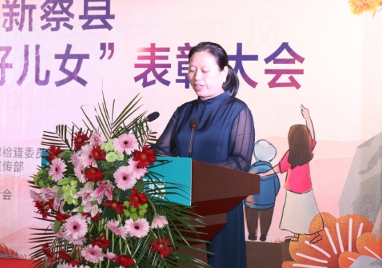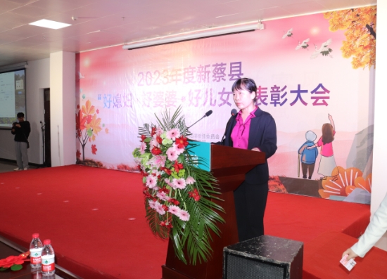 新蔡縣婦女聯(lián)合會(huì)主席宋小米宣讀新蔡縣紀(jì)委監(jiān)委、縣委宣傳部、縣總工會(huì)、縣婦聯(lián)、縣文明辦文件《關(guān)于表彰2023年度新蔡縣“好媳婦”、“好婆婆”、“好兒女”的通知》和“好媳婦”、“好婆婆”、“好兒女”表彰名單。
