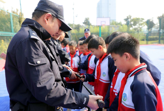 從審判庭出來,法官帶領(lǐng)同學(xué)們來到法警訓(xùn)練場。扶溝法院司法警察大隊的法警們向同學(xué)們講解了法警的單警裝備名稱和使用方法,具體展示了手銬、快拔式伸縮警棍、催淚噴射器的使用方法和注意事項。隨后,在司法警察的帶領(lǐng)下,同學(xué)們興致勃勃的體驗了各種警用裝備。