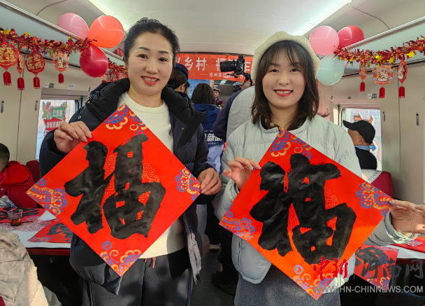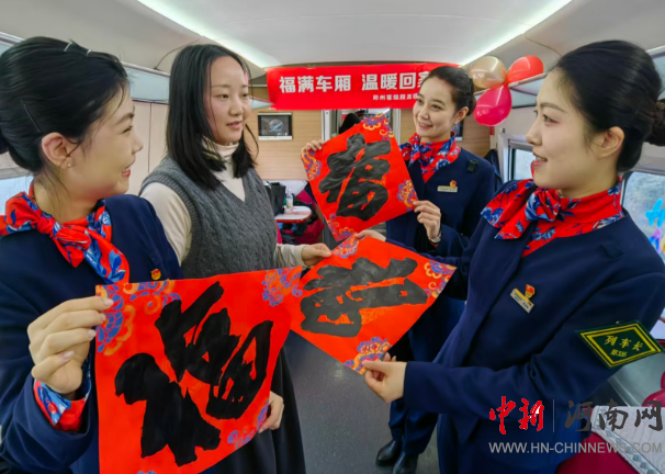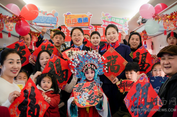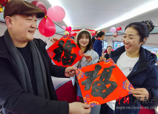 中新河南網(wǎng)2月2日電 2026年2月2日,鄭州客運段高鐵四隊擔(dān)當(dāng)?shù)泥嵵輺|至廈門G2045次列車上,一場精彩的“振興鄉(xiāng)村,福滿車廂”主題活動溫暖開啟。在車廂內(nèi),書法家揮毫潑墨送“福”字,豫劇《花木蘭》鄉(xiāng)音婉轉(zhuǎn)回蕩,車廂洋溢著濃濃的年味。