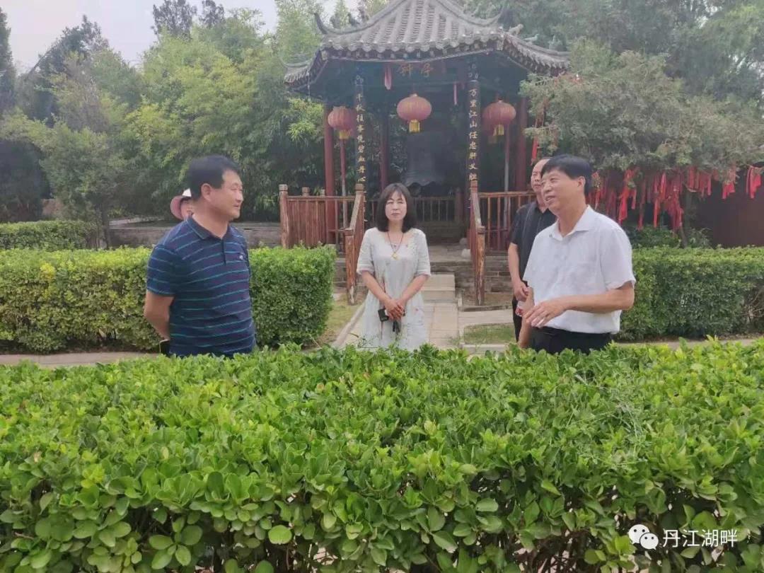 淅川范蠡研究會(huì)考察組在衛(wèi)輝市委宣傳部副部長(zhǎng)張建軍(左一)、衛(wèi)輝市文聯(lián)主席李志蔚(中)陪同下考察比干文化建設(shè)