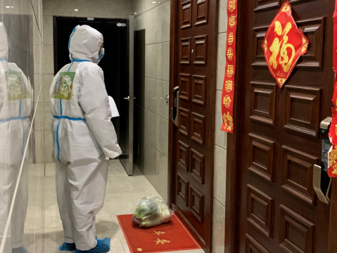 1月4日晚9時,接上級防疫部門通知,萬科美景世玠小區(qū)進入封控狀態(tài)。由于封控時間在晚上,業(yè)主未能提前購買生活用品,不少業(yè)主家中蔬菜、糧食告急,萬科物業(yè)緊急協(xié)調資源購買了7200斤新鮮蔬菜,免費向業(yè)主贈送。