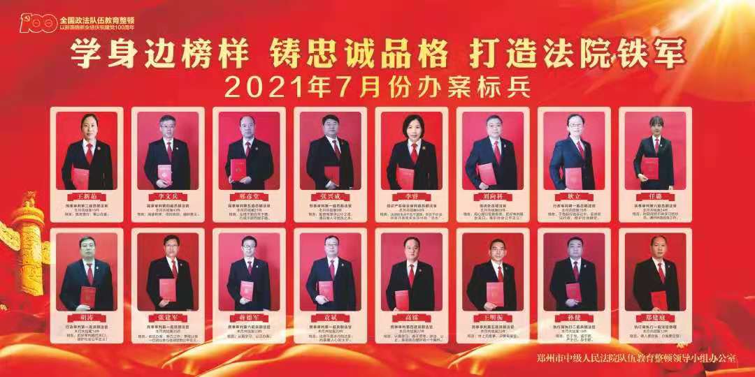 8月5日,鄭州中院公布7月份法官業(yè)績評價排名,王新茹、張興成、耿立等16名法官榜上有名。