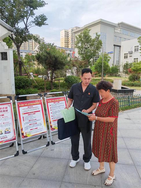 活動中,普法干警在縣交通要道、法治公園通過擺放宣傳版畫、懸掛宣傳橫幅、發(fā)放宣傳單頁等形式進(jìn)行普法宣傳。