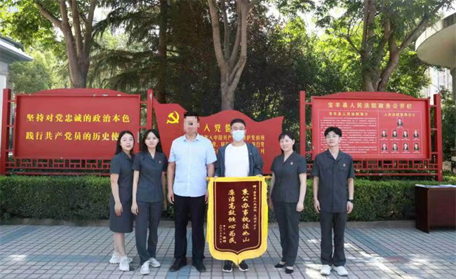 錦旗雖輕,情誼深重,小小一面錦旗承載著人民群眾對(duì)寶豐法院工作的肯定和贊揚(yáng),寶豐法院速裁團(tuán)隊(duì)將一如既往地堅(jiān)持“司法為民、公正司法”的宗旨,抓實(shí)抓好“公正與效率”,化解矛盾糾紛,讓人民群眾切實(shí)體會(huì)到司法的溫度。