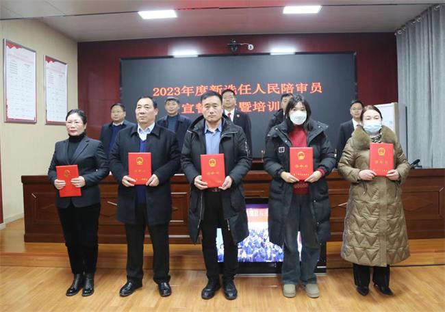 中新河南網(wǎng)(耿海鑫 廉炳南)為增強(qiáng)人民陪審員的榮譽(yù)感、責(zé)任感、使命感,進(jìn)一步提升人民陪審員的業(yè)務(wù)水平和工作能力。1月19日上午,魯山縣法院舉行新任人民陪審員就職宣誓儀式暨崗前業(yè)務(wù)培訓(xùn)會(huì)。院黨組副書記、副院長(zhǎng)郭國(guó)會(huì),縣人大常委會(huì)委員、法工委主任王延生,縣人大常委會(huì)委員、選工委副主任郭二曉,縣司法局主任科員姚小飛以及新任人民陪審員出席活動(dòng),活動(dòng)由院黨組成員、政治部主任戴遠(yuǎn)哲主持。