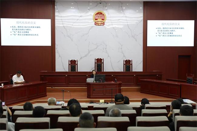 寶豐法院還邀請到了平頂山市委黨校馬克思主義基礎(chǔ)理論教研室主任周博向培訓(xùn)人員詳細(xì)講解了人民陪審員司法禮儀規(guī)范,有助于維護(hù)法庭的神圣與威嚴(yán),提高司法公信力,樹立司法權(quán)威。
