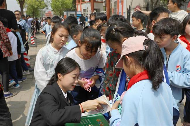 中新河南網(wǎng)(常一錦)“小朋友們,如果有陌生人向你尋求幫助,你會(huì)怎么做呢?”寶豐縣人民法院干警正在山河路小學(xué)門口給小朋友們講解法律小知識(shí)。為提升婦女兒童自我保護(hù)意識(shí)和法治觀念,4月16日上午,寶豐法院組織干警來到山河路小學(xué)門口開展保護(hù)婦女兒童權(quán)益專題普法宣傳活動(dòng)。