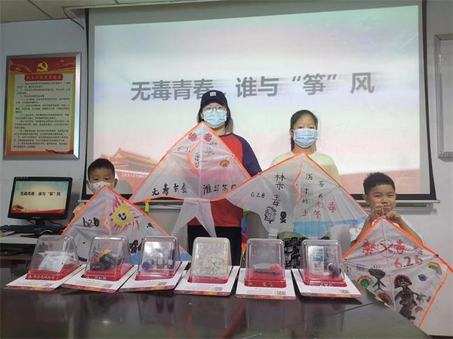 拒毒——活動(dòng)現(xiàn)場(chǎng)設(shè)置禁毒風(fēng)箏繪畫環(huán)節(jié),向青少年派發(fā)風(fēng)箏及制作材料,引導(dǎo)青少年“寫出禁毒知識(shí),畫出禁毒理想”,根據(jù)所學(xué)的禁毒知識(shí),發(fā)揮想象力在空白風(fēng)箏上繪制出禁毒圖案、口號(hào)或漫畫;同時(shí)向現(xiàn)場(chǎng)青少年及家長(zhǎng)發(fā)放《中小學(xué)毒品預(yù)防教育知識(shí)讀本》《珍愛生命遠(yuǎn)離毒品》等禁毒彩頁(yè),科普毒品危害及特征從而教育他們遠(yuǎn)離毒品、警惕新奇零食的誘惑。
