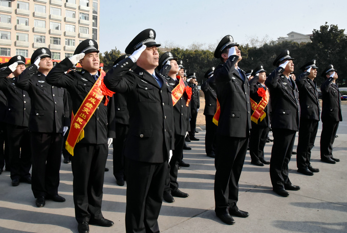 本網(wǎng)訊(張培 李書江)為熱烈慶祝第三個(gè)“中國人民警察節(jié)”,進(jìn)一步加強(qiáng)公安隊(duì)伍理想信念和忠誠教育,切實(shí)增強(qiáng)廣大公安民輔警的職業(yè)榮譽(yù)感、使命感、歸屬感,2023年1月10日上午,許昌市公安局魏都分局組織舉行升國旗儀式暨重溫入警誓詞活動(dòng)。