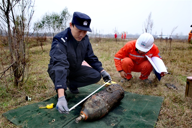 “那是我人生中最漫長(zhǎng)的一個(gè)小時(shí)……”對(duì)肖磊來(lái)說(shuō),2019年5月20日的排爆場(chǎng)景恍如昨日。那天清晨,接到“信陽(yáng)火車站北廣場(chǎng)一工地發(fā)現(xiàn)特大航空炸彈”消息后,肖磊立即到達(dá)現(xiàn)場(chǎng),只見一枚炸彈陷于淤泥中,引信和彈體保存完好,長(zhǎng)1米左右,重100余斤,彈體上的銘牌清晰可見,注明該航彈為侵華日軍于1938年生產(chǎn)。航彈發(fā)現(xiàn)地距離京廣鐵路線只有100多米,炸彈如果爆炸將會(huì)嚴(yán)重威脅鐵路運(yùn)輸秩序和旅客生命安全,甚至可能會(huì)造成南北大動(dòng)脈的阻斷。