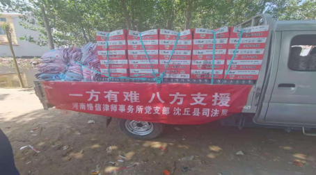 7月25日上午,在沈丘縣司法局黨委委員、副局長(zhǎng)趙峰的帶領(lǐng)下,河南恪信律師事務(wù)所張偉、韓海龍、李軍旗等一行人員,不懼炎熱,排除困難,驅(qū)車來(lái)到扶溝縣城郊鄉(xiāng)馬村行政村,為受災(zāi)的群眾、堅(jiān)守在抗災(zāi)前線的村干部和救援隊(duì)伍送上方便面、救生圈、礦泉水和夏涼被等必備的救援物資,以緩解他們的燃眉之急。當(dāng)?shù)匕傩者B聲稱贊:在斷水?dāng)嚯、家庭無(wú)法居住的困境下,這些物資真的是及時(shí)雨。