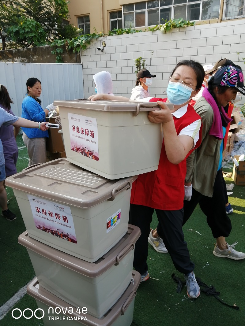 正在搬運災后生活保障箱