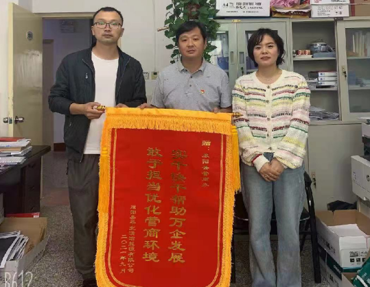 中新河南網(wǎng)訊(田波濤)9月18日,河南省原陽(yáng)縣平北清潔能源有限公司把一面印有“實(shí)干快干幫助萬(wàn)企發(fā)展,敢于擔(dān)當(dāng)優(yōu)化營(yíng)商環(huán)境”的錦旗送到了原陽(yáng)縣發(fā)改委營(yíng)商辦,致謝工作人員為企業(yè)排憂解難以及周到的服務(wù),高效的工作效率。