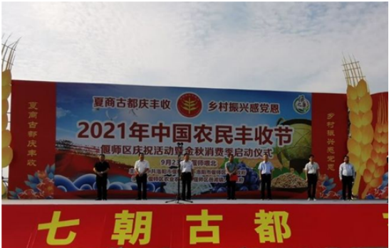 中新河南網(wǎng)訊(李志強 通訊員 陳延輝 王艷艷 李博)金秋時節(jié),瓜果飄香。9月23日上午,由中共洛陽市偃師區(qū)委、區(qū)政府主辦的“2021年中國農(nóng)民豐收節(jié)偃師區(qū)慶祝活動暨金秋消費季啟動儀式”在主會場岳灘鎮(zhèn)喂北村正式啟動。來自各行業(yè)的嘉賓與農(nóng)民朋友們歡聚一堂,看特色演出、賞豐收美景、嘗農(nóng)家美味,共慶五谷豐登,喜迎國慶佳節(jié)。